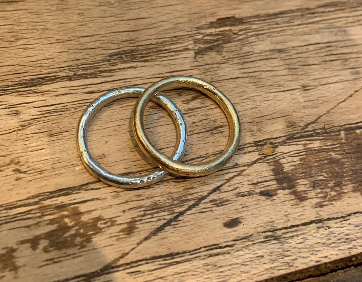 We werken met 100% koper, goud met een gemiddelde van 18K, zilver 925 en RVS (roestvrij staal).