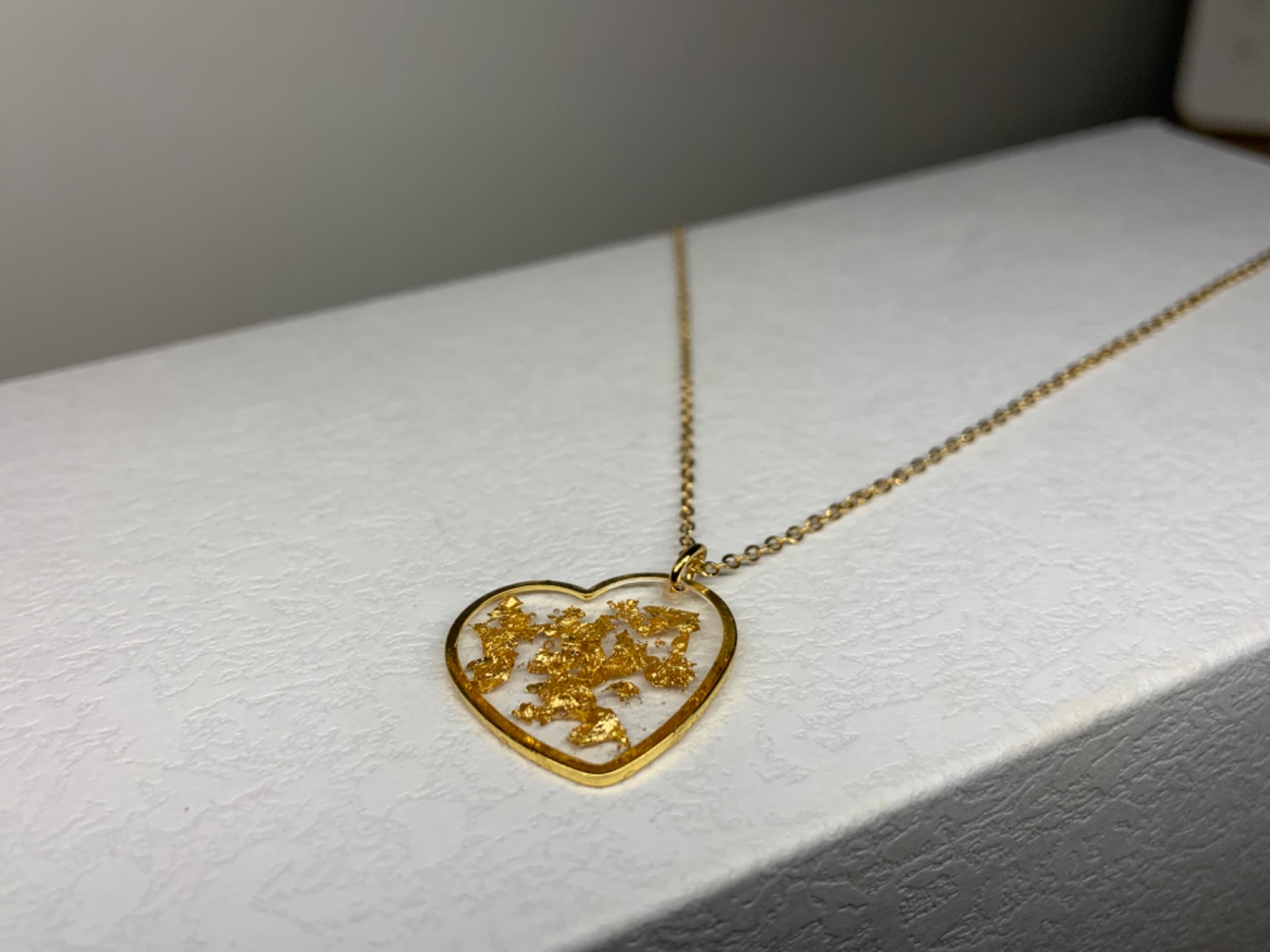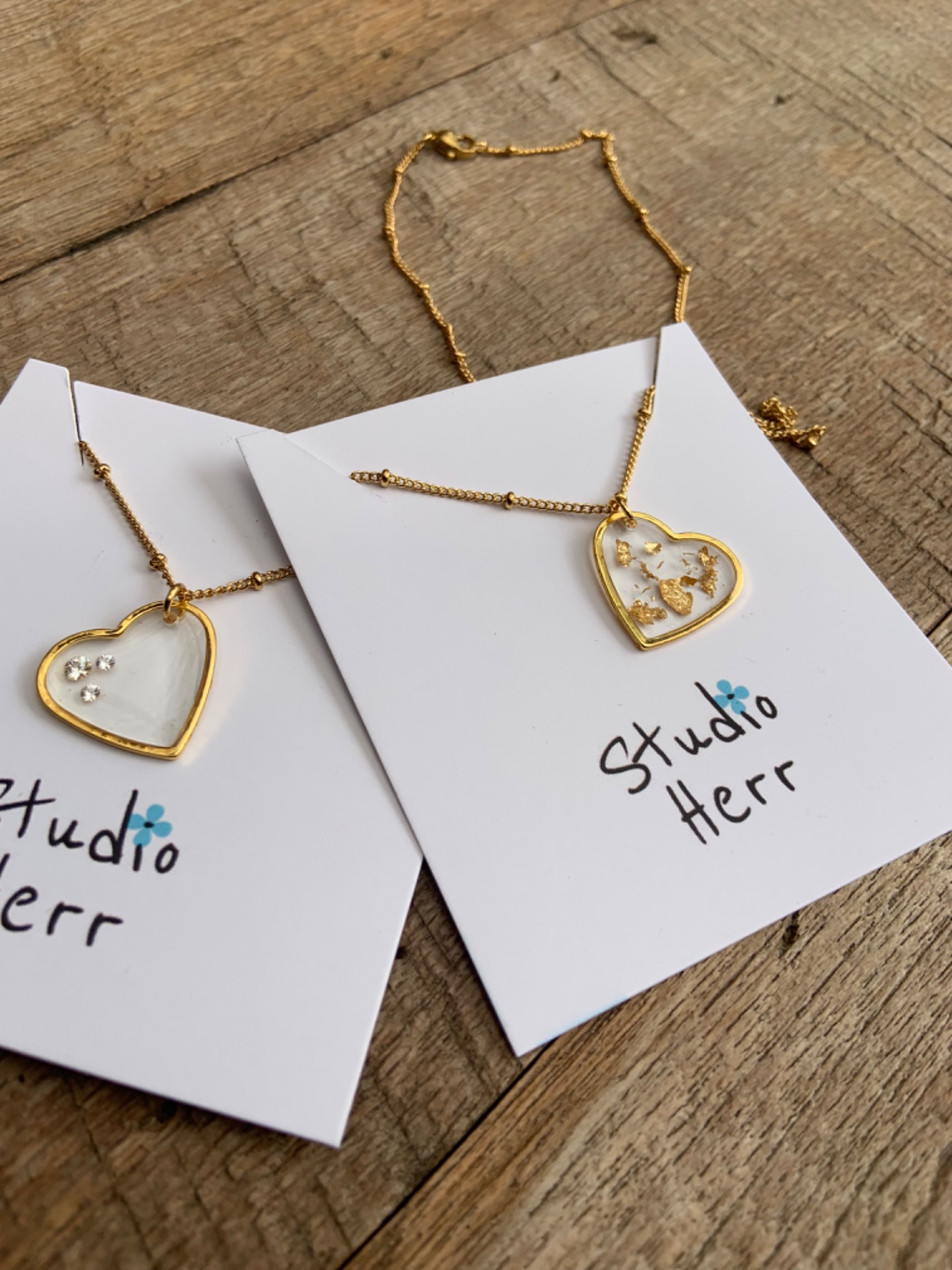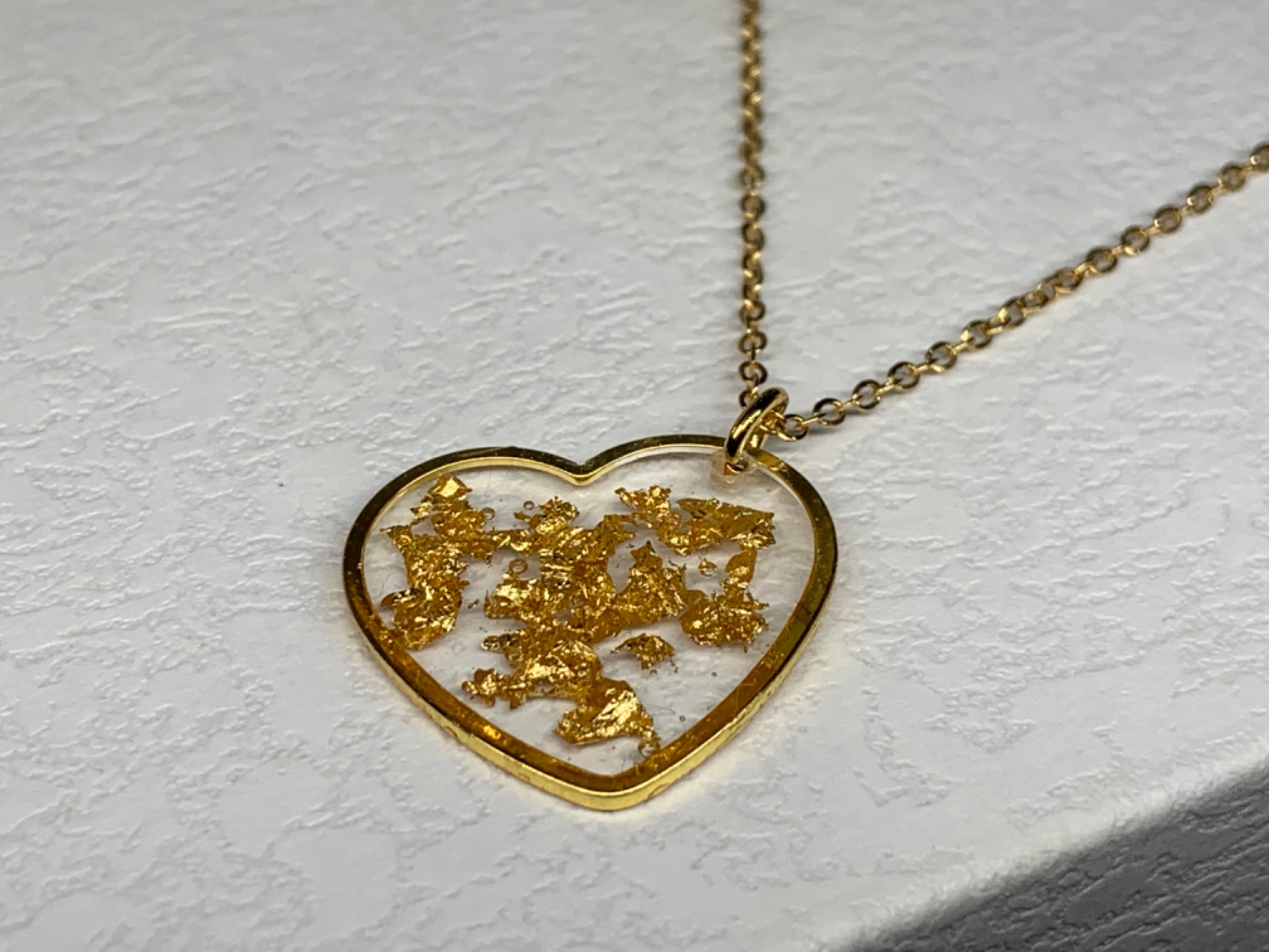 Hartvormige hanger met vulling in bladgoud, met een boodschap voor de drager: je hebt een hart van goud!