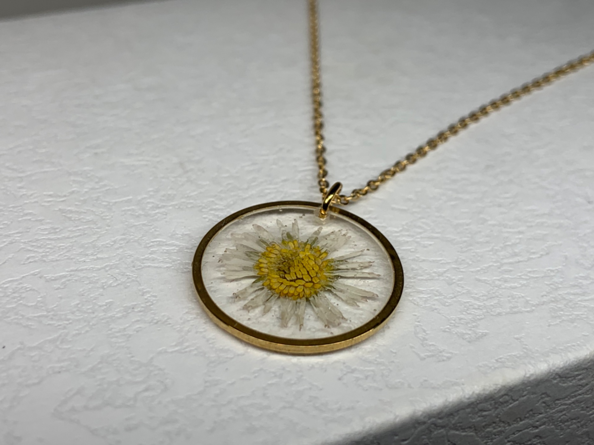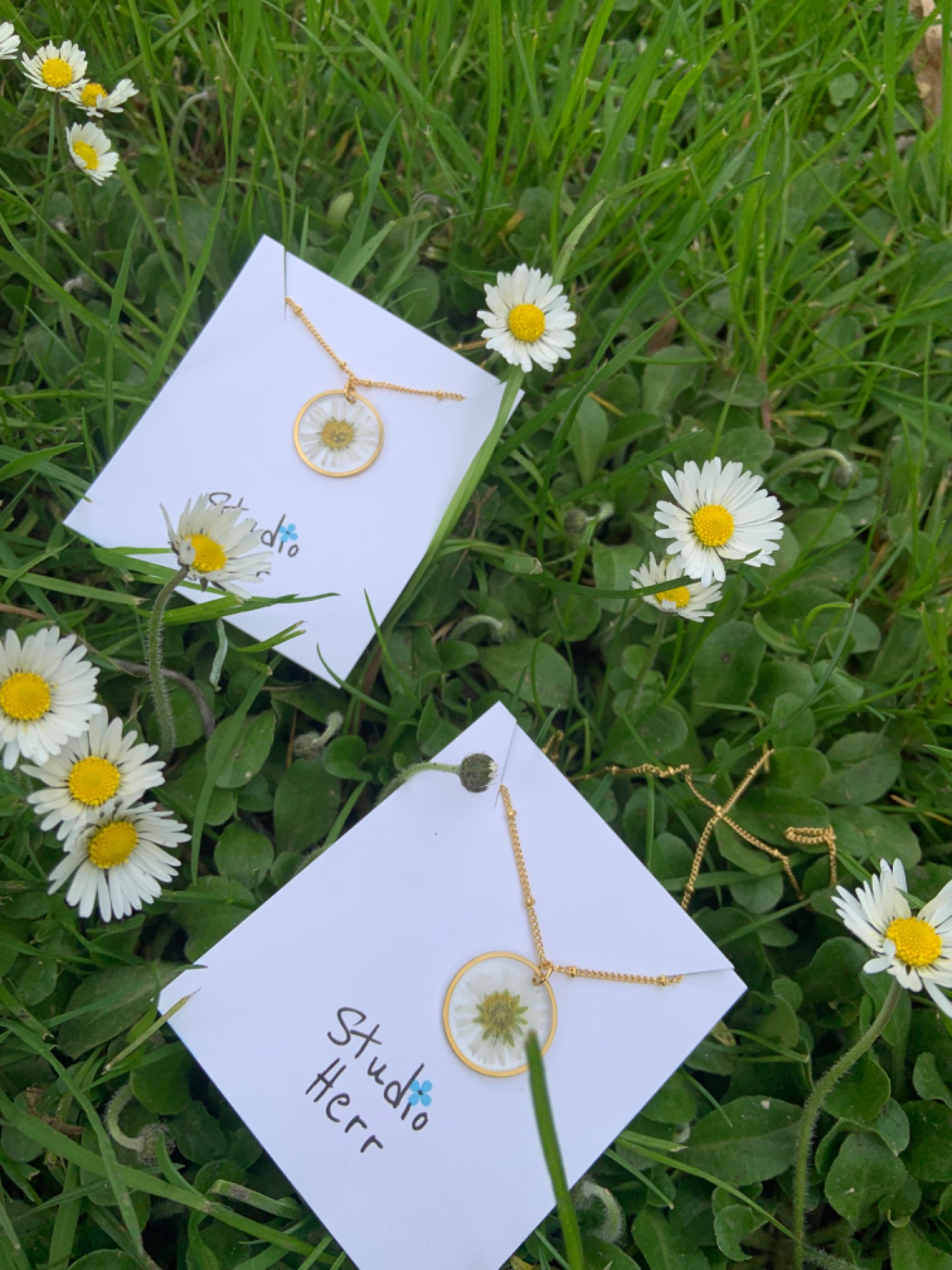 Een madeliefje halsketting, dat doet dromen van fris lentegras.
