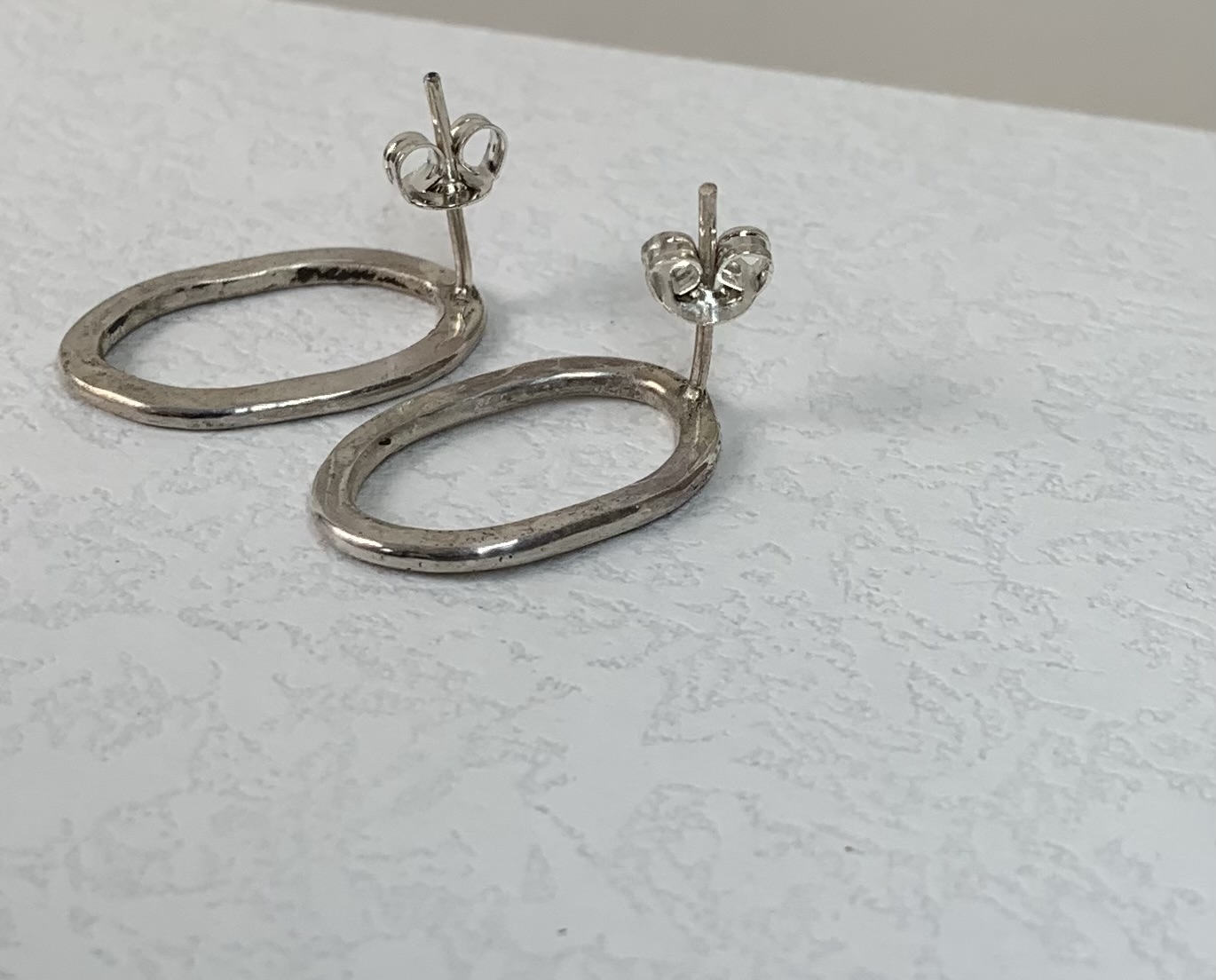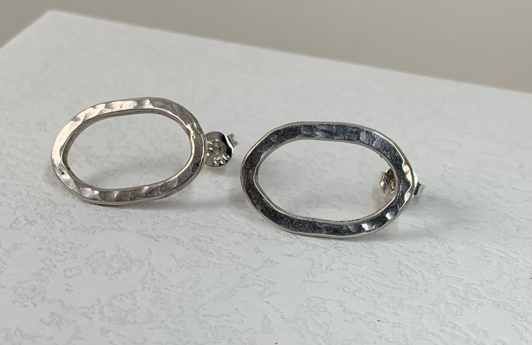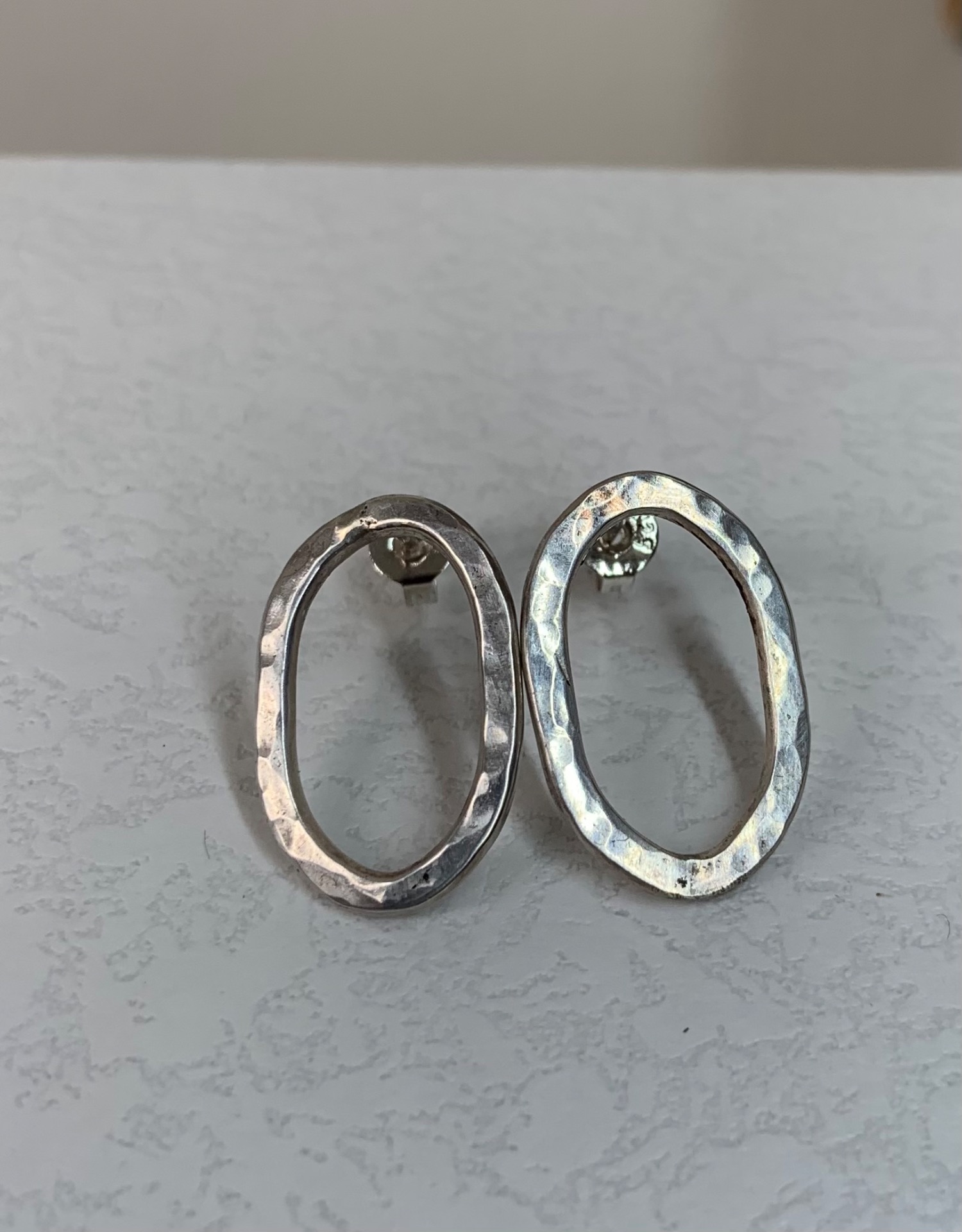 Ovaalvormige oorbellen in puur zilver. Gesmeden, gehamerd. Met een authentieke look and feel.
