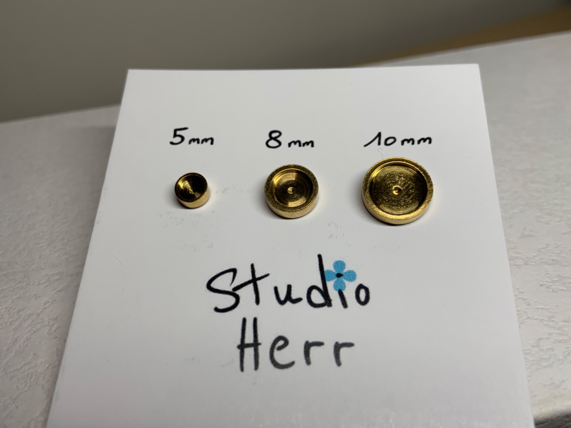 We maken deze oorbel voor jou in maat S (5mm diameter), M (8mm diameter) of L (10mm diameter). De dikte is 2mm.