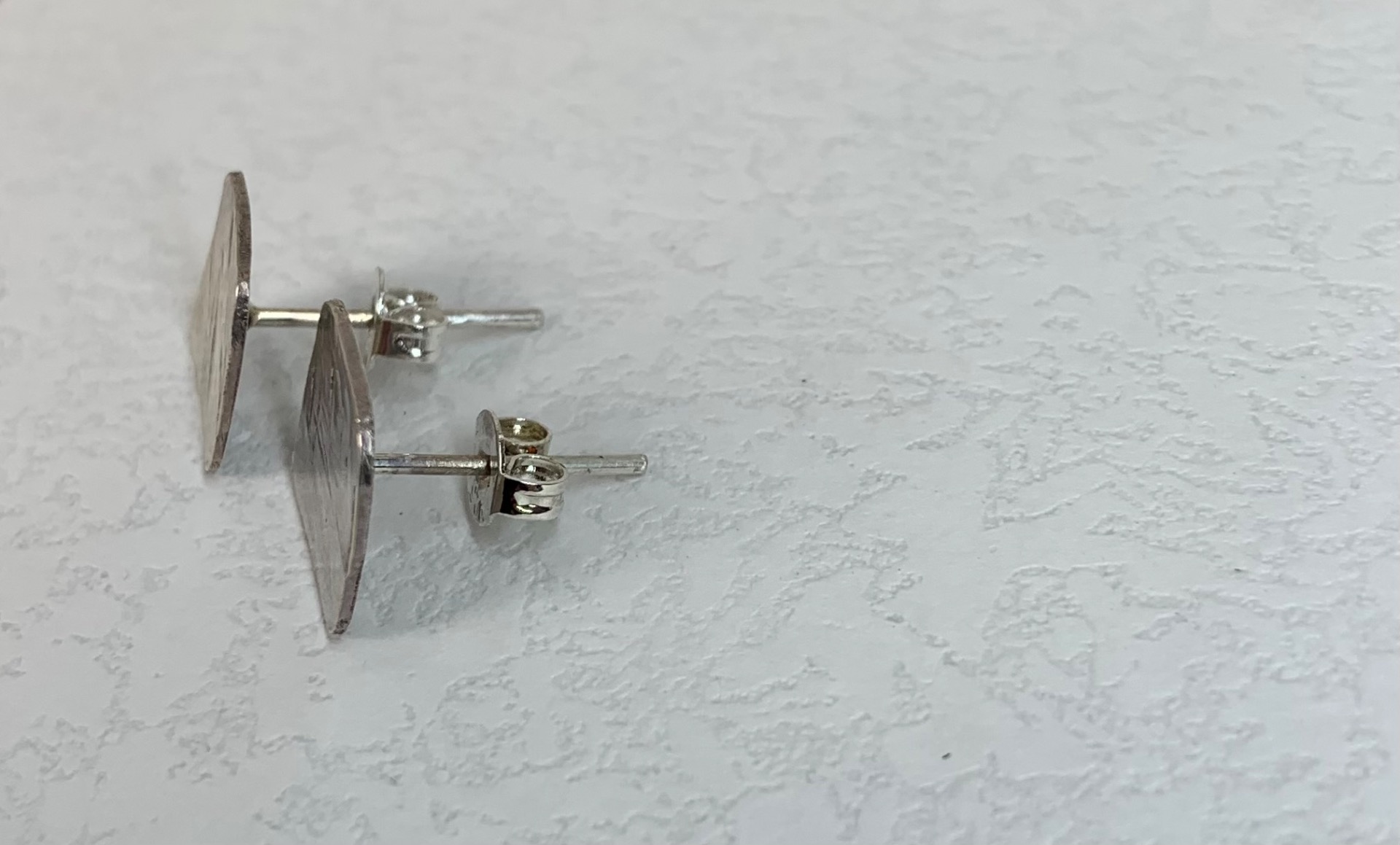 Elegante vierkante massief zilveren oorbellen. Handgehamerd.