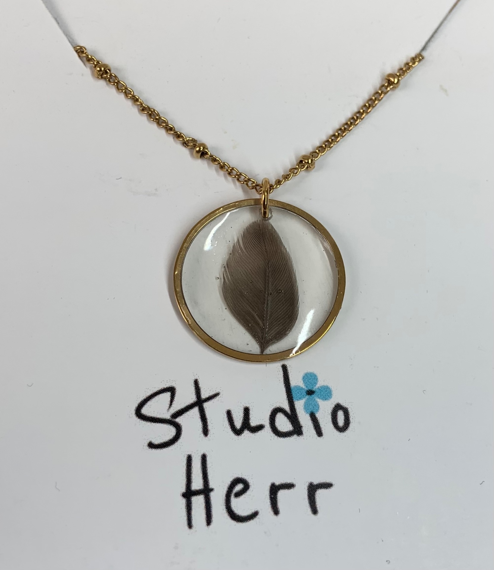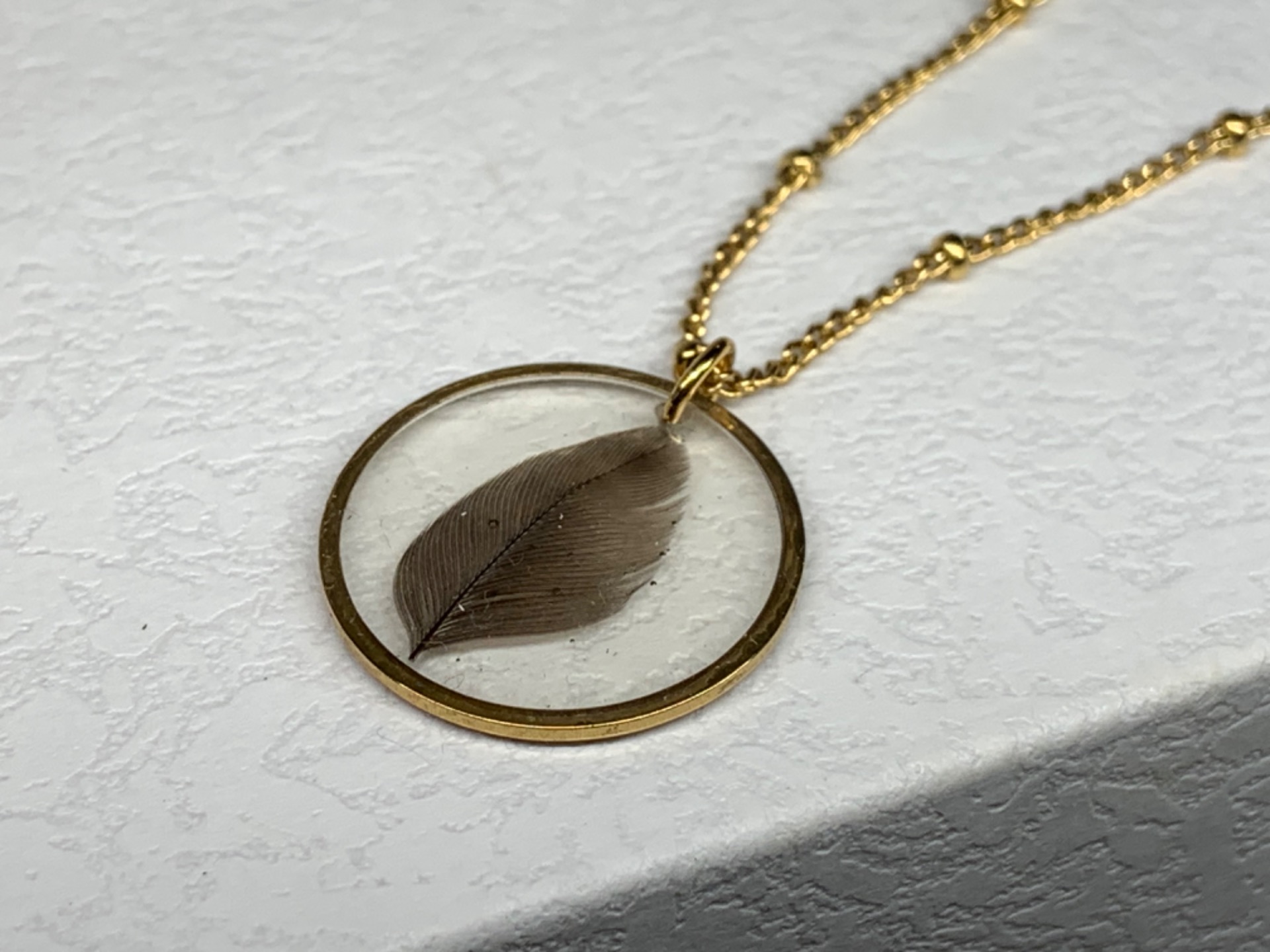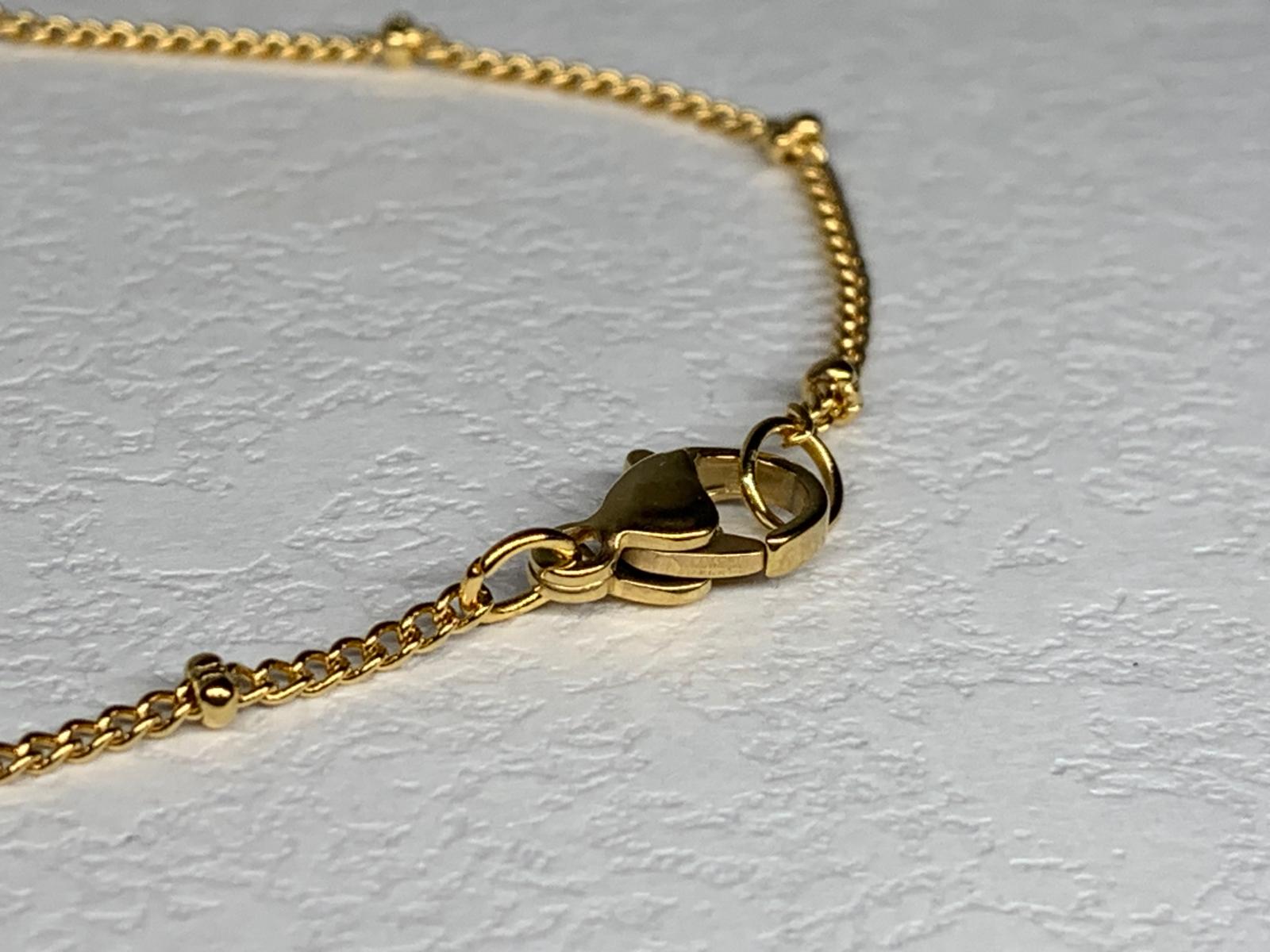 RVS materiaal, de ketting meet ongeveer 44cm. De hanger is 1mm dik.